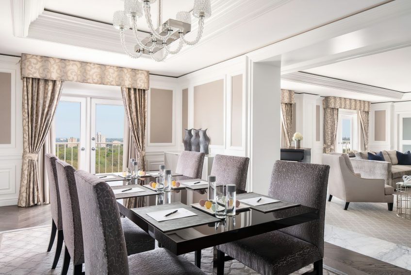 The hotels 299 contemporary guest rooms and suites include a design aesthetic that blends contemporary and classic styles. Club Level guest accommodations allow guests to step out onto the Juliet balcony of their luxury hotel room or suite to catch a glimpse of the downtown St. Louis skyline. The rooms and suites are among the largest in St. Louis and theyโre among the most stylish, too. The dazzling Ritz-Carlton Suite, is a marvel of contemporary technology and design, anchored by a versatile five-bay setting, Steinway Grand piano, furnished double balcony and sweeping skyline views of Forest Park and the Gateway Arch. The suiteโs neutral, calming design palette is highlighted by vibrant pops of color, thanks to a custom-curated collection of St. Louis art, pottery and ceramic works from famed local artists Ted Collier and Chris Schulte.