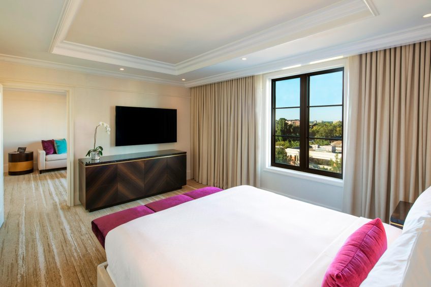 Guest rooms and suites are appointed with residential polish and elegantly designed, with naturally lit spaces adorned with calming hues of sage or raspberry. Each of the hotel’s guest rooms and suites are elegantly appointed with the comforts of a luxury home featuring iPad controls for smart room functionality, Wi-Fi internet access and plush dรฉcor, linens and finishing.