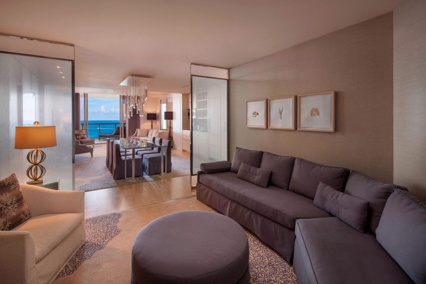 The luxuriate guest rooms and suites are contemporarily styled harmonizing the sophistication and luxury of Bal Harbour with the vibrant turquoise waters of the Atlantic Ocean and pristine white sands of Miami Beach. The exquisitely appointed accommodations offer floor-to-ceiling windows, which lead to a spacious, glass-walled balcony furnished with recliners or lounge chairs to enhance relaxation while enjoying the spectacular ocean views.
