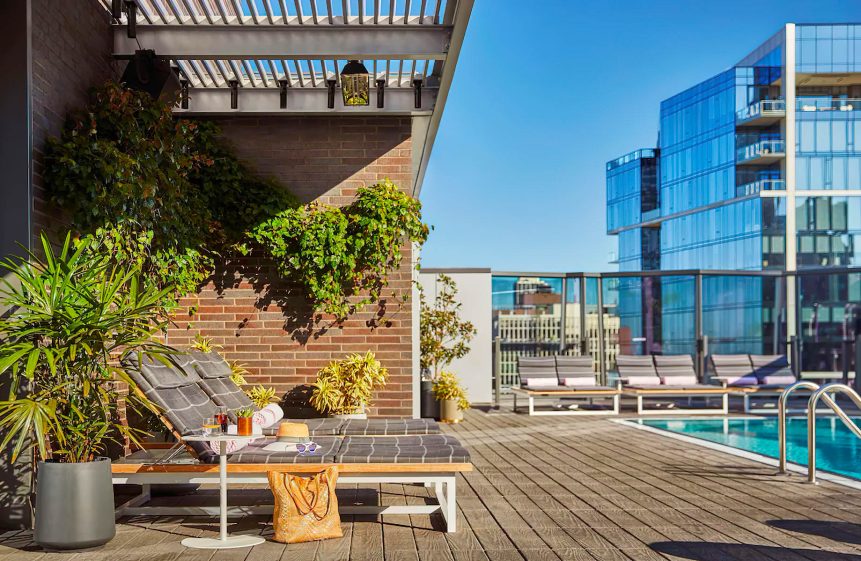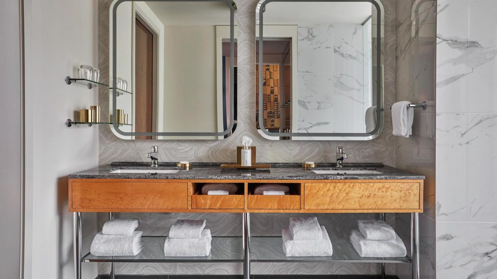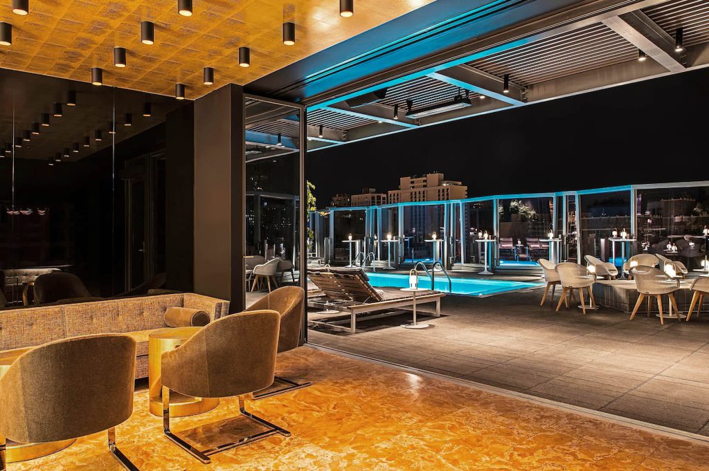 Experience the epitome of opulence with luxury accommodations in a renowned landmark building. The hotels guestrooms, which consist of 180 rooms and 18 suites, redefine mid-century modern glamour with innovative touches. The captivating decor features striking gold and black accents that exude retro-chic vibes against the city’s backdrop, visible through the floor-to-ceiling windows. You can stay in and relax as much as you want, with the assurance that exciting adventures await outside. The suites and guestrooms reflect the neighborhood’s historic splendor, boasting modern amenities such as rain showers, oversized work desks, and premium linens. The interiors resemble stylish residences, complete with a range of amenities that go beyond what meets the eye.