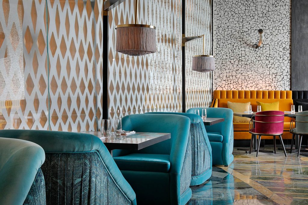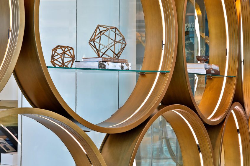 The hotels vibrant 499 guest rooms and suites include floor-to-ceiling windows offering spectacular views of the racetrack or marina. All architectural elements are influenced by a tone setting vibe of symmetry, intricate detail, parallel beams, and optical illusions, creating silhouettes and shades inspired by the region’s natural lakes, wetlands, salt flats and fossilized sands and dunes, the hidden natural gems of the UAE.