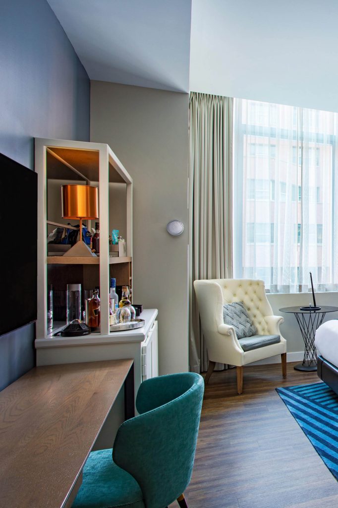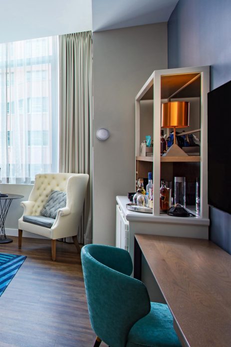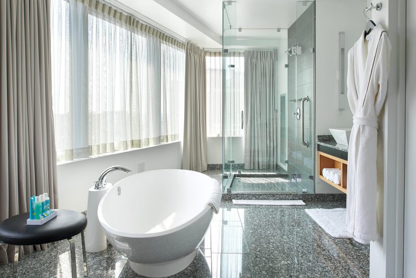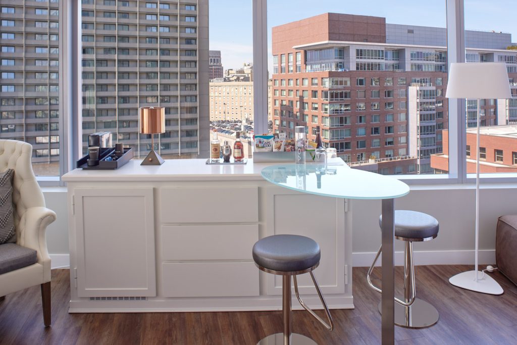 Soak up the Boston skyline from one of the stylish hotel rooms or presidential suites at W Boston. With some of the most tech-forward hotel rooms in downtown Boston, this is your modern escape away from home. Before you explore the Theatre District, dig into your suite’s W Mix Bar and refresh in a slate bathroom. Slip into a signature W bed with a featherbed mattress, floating frame, and coffered headboard. Multi-purpose desks/bars in all rooms and suites help you blend work with play during your Boston getaway.