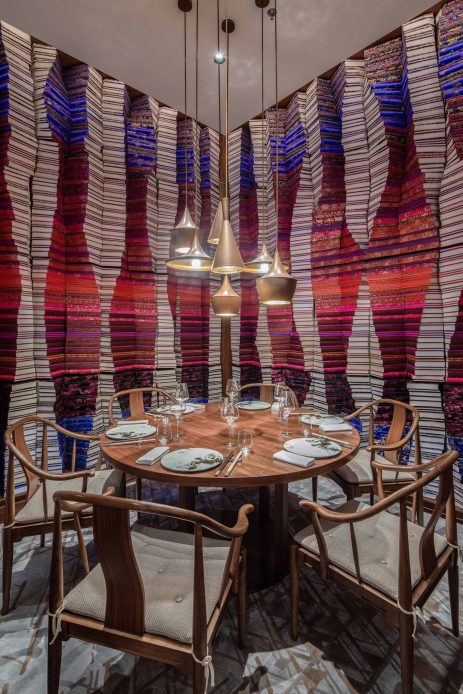 Fusing rich traditions with a dynamic modern lifestyle, Chengdu-inspired international design firm Glyph Design Studio playfully named the hotelโs design narrative as โDuโtitudeโ. As such, the hotelโs brightly coloured glass faรงade leads to vibrant interiors with rainbow hues, inspired by the nearby Jiuzhaigou National Park, layered with local references. The hotelโs playful vibe continues across its rooms and suites. Each room has customised panda cushions and teapots as well as bath amenities by sustainable, eco-friendly beauty brand Davines.