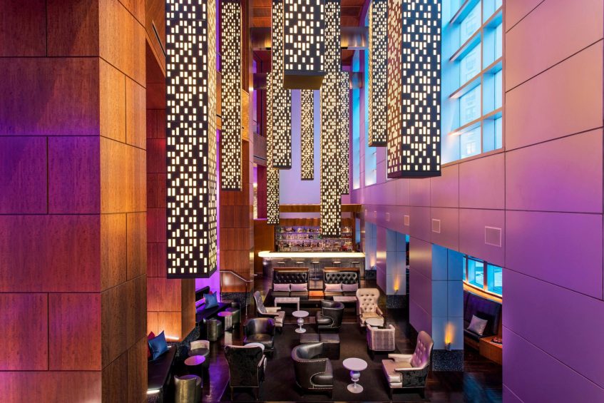 The 223 guestrooms, including 20 suites are gorgeously designed, many of which showcase grand NYC views. Each room’s pleasing shades of taupe and cobalt are inspired by the stunning views they provide of the NYC skyline. Sink into a signature W bed with pillow-top mattress, 350-thread-count sheets, and goose down comforter. Freshen up each morning in a sleek bathroom with Davines amenities in each room.