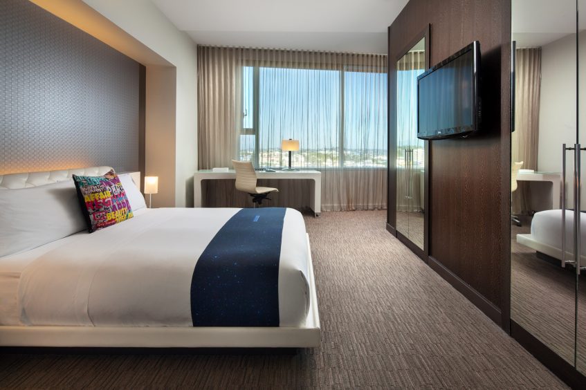 The 305 modern hotel rooms and suites boast sublime comfort in a prime location on Hollywood & Vine. Revel in the rich tones of the wood floors and fresh white linens accented with vibrant colors throughout each suite. High-speed internet access and spacious work areas keep you connected to friends and coworkers back home. Inviting pillowtop mattresses and marble bathrooms will have you feeling refreshed after a night in one of the guest rooms. Wind down from an adventurous day in your hotel suite to recharge and get ready for what comes next.