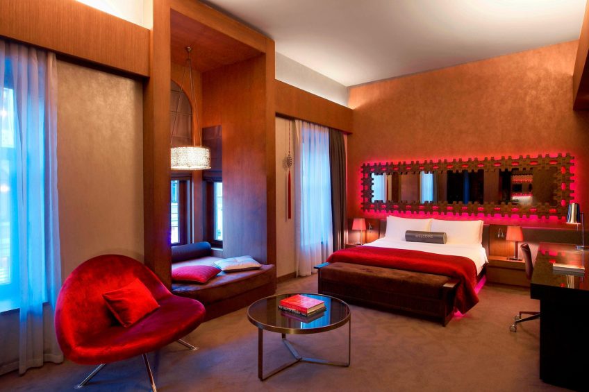 Ultra-modern hotel rooms showcase sleek modern furniture, plush velvet seating and mood lighting for a playful yet sophisticated vibe. Each suite is uniquely decorated with fashion-forward design elements and vibrant pops of color that are sure to keep you inspired. Enjoy W beds with crisp cotton linens and ruby-red satin duvets. Private outdoor cabanas and lounge areas are ideal for soaking up the fresh air and views of Old Istanbul. Freshen up each morning in our pristine bathrooms with Bliss Spa bath amenities and rainforest showers. Getting hungry? Curb late-night cravings with our W MixBar offering tasty snacks and refreshing beverages.