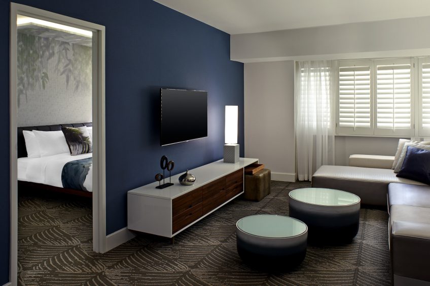 Home to 297 luxury rooms and suites, this West Los Angeles hotel dazzles with next-level amenities and vibrant accommodations, styled to showcase LA’s bold spirit. The vivacious rooms and suites offer cutting-edge technology, flat-screen TVs, mini-bars, mini-refrigerators, and indulgent bedding. While business travelers will appreciate the large desks and Wi-Fi access and the proximity to UCLA and the Medical Center.