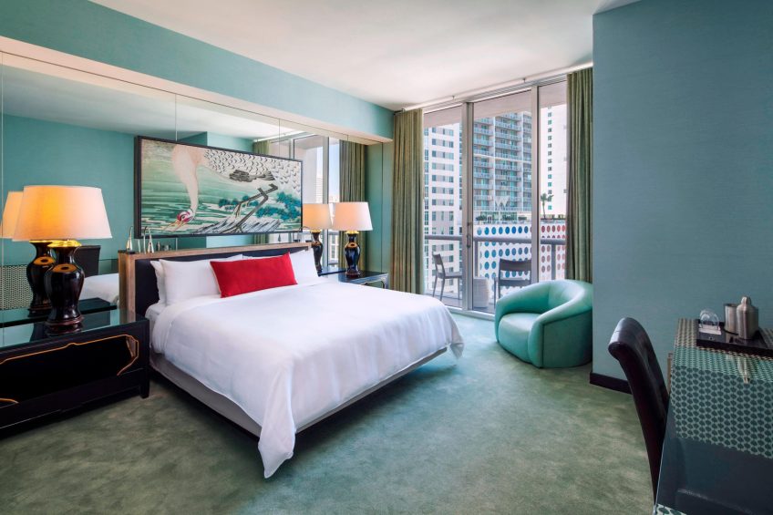 Relax in the spacious hotel rooms or suites, some featuring private balconies overlooking downtown Miami or Biscayne Bay. The sumptuous rooms feature floor-to-ceiling windows framing with marble bathrooms and signature bath amenities. The comfortable interiors designed in the Hollywood Regency style allow gests to indulge in luxury and experience the best of Miami, Florida,