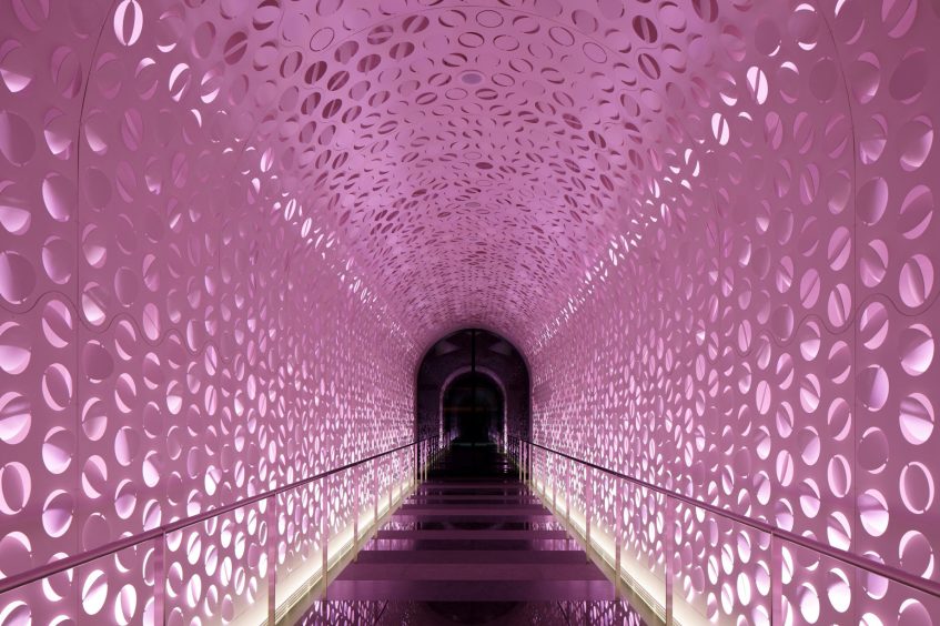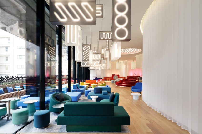 Nestled in a landmark 27-story high-rise in the heart of Shinsaibashi, on Midōsuji Boulevard, W Osaka brings its own brand of bold, unmistakable energy to Osaka, a city with one of the most vibrant spirits in the land of the rising sun. The hotel absorbs the sights, sounds, flavors, and thrills of Osaka with a minimalistic exterior that veils extraordinary interiors. From the simple beauty of the cherry blossoms and gingko trees lining the Midosuji Boulevard to the vibrant neon and busy streetscape of Osaka’s nightlife district Dotombori. The hotel design finds inspiration in both the simple and traditional, as well as the modern, obsessive, and extravagant and created a design concept of extravagant simplicity, celebrating the true spirit of the city.