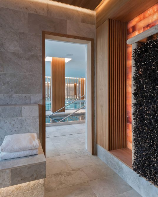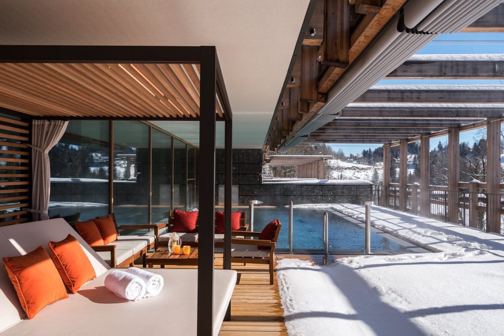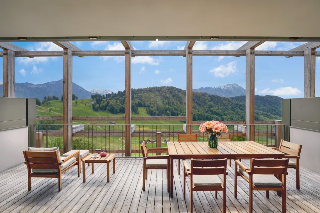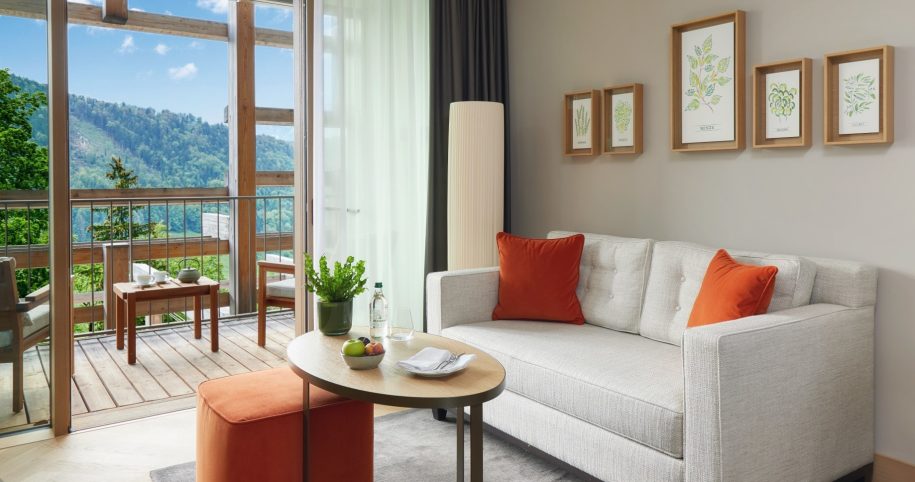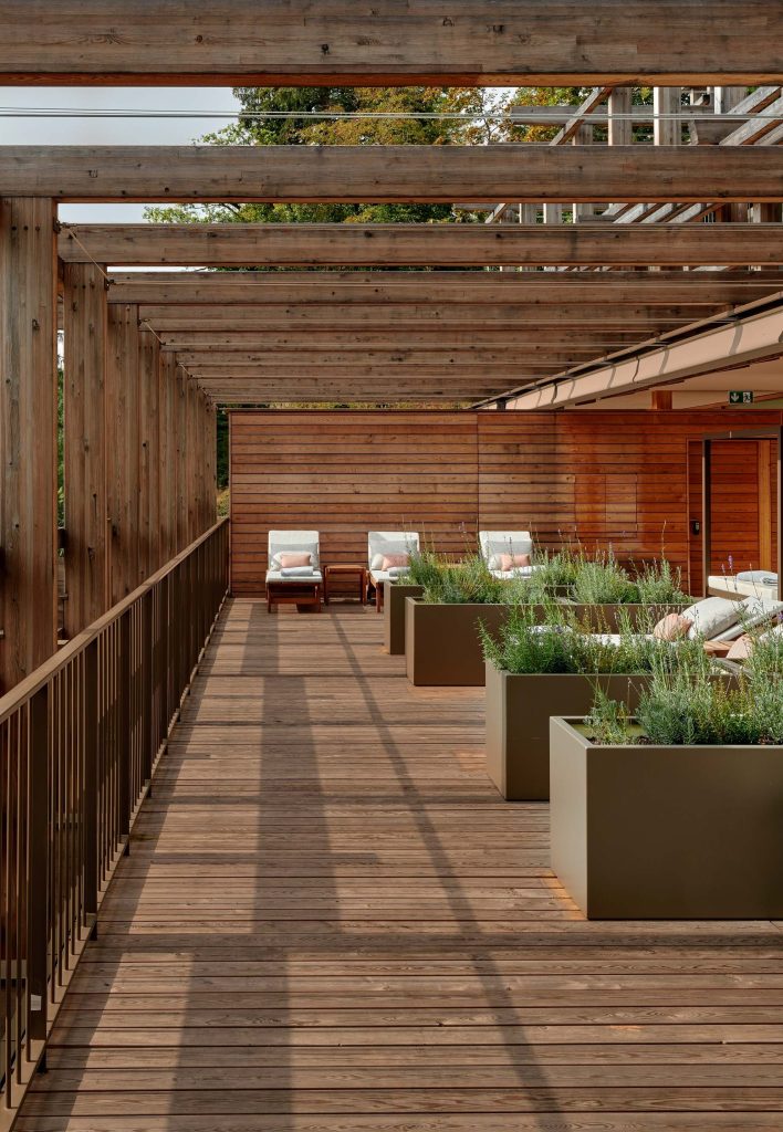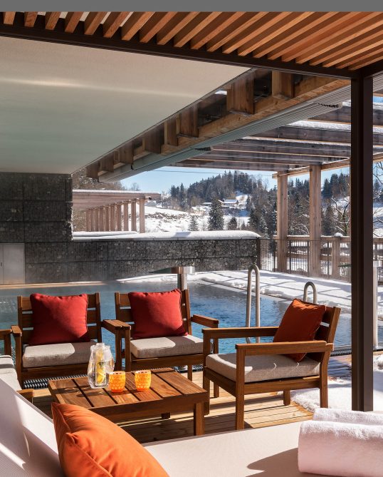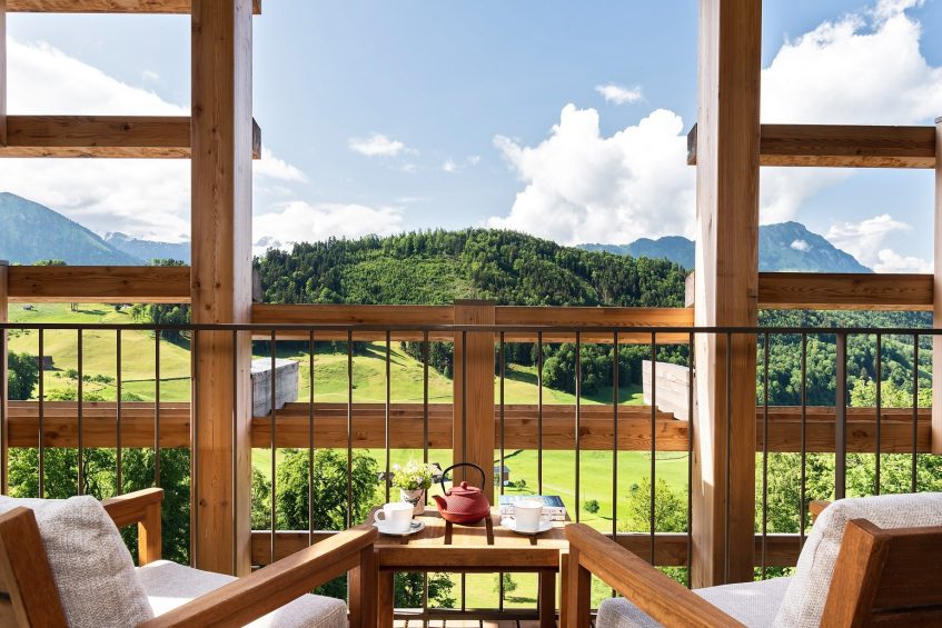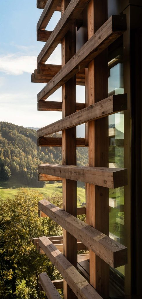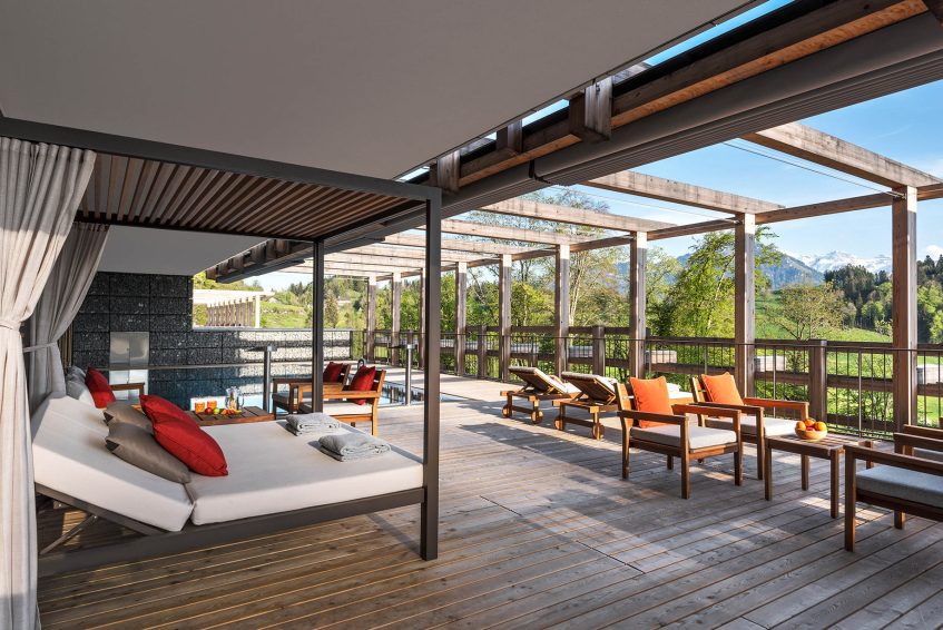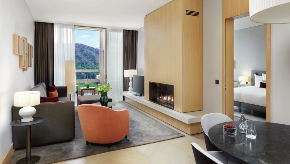 The architecturally arresting exterior of the Waldhotel stands out for its striking façade as the world’s largest Gabion and wooden pergolas frame building. Designed by Matteo Thun, Waldhotel’s spacious interiors, flooded with southern light, are furnished with a balanced, modern design and natural materials that appeal to all the senses. An environment of innovative design where organic shapes and natural finishes set new standards in spacious comfort and elegant style, embedded in Swiss alpine scenery.