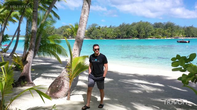 A magnificent sunset takes place beyond the horizon in Bora Bora, French Polynesia.
